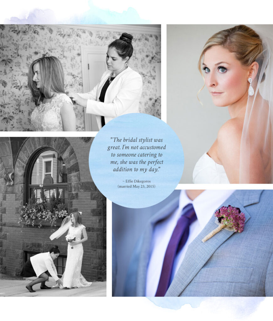 “I thought the bridal stylist was a great addition to the team! She did a fantastic job and made me feel at ease knowing she was there. I thought it was very helpful. I would recommend a bridal stylist to other brides!” ~ Vanessa Irwin (married May 9, 2015)